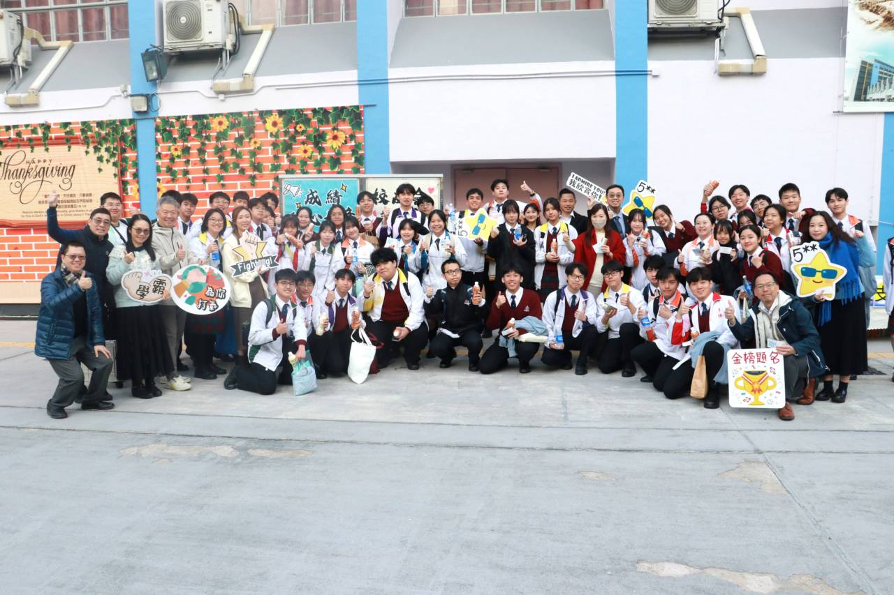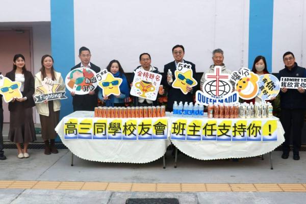 校友會與校長,副校及中六班主任派禮物為高三同學打氣