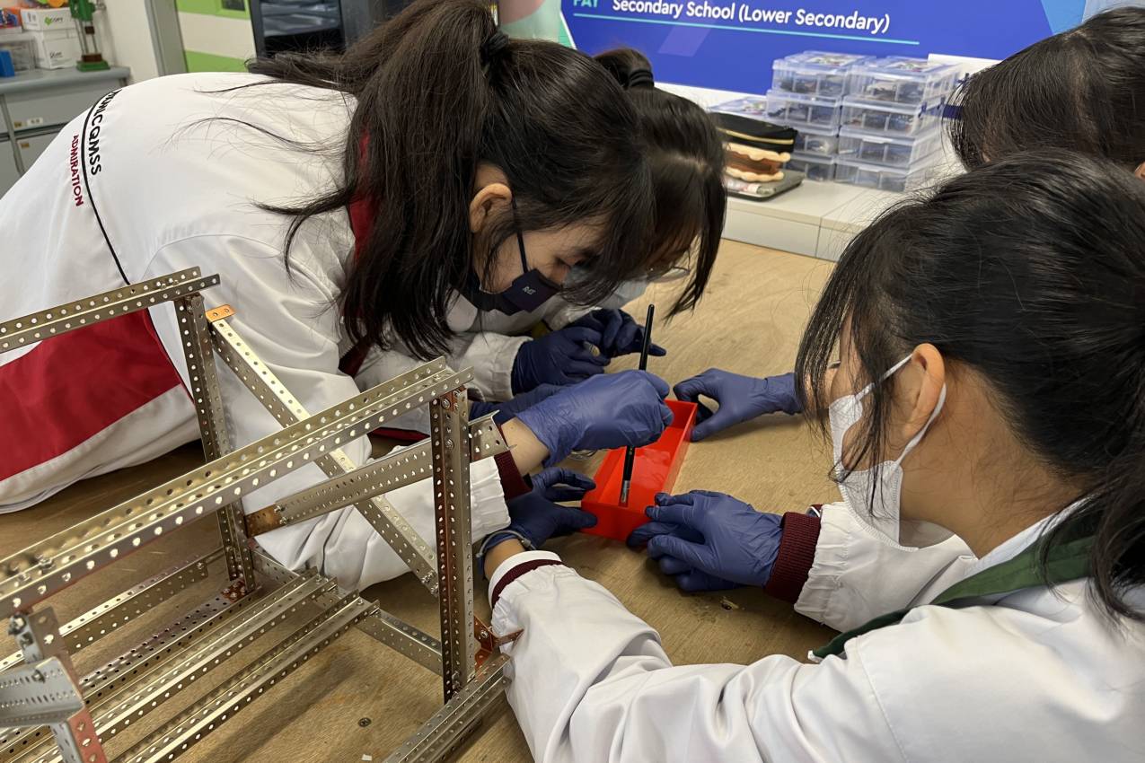 為推動STEAM(科學、科技、工程、藝術、數學)教育的發展,本校將課程與現實生活的需要結合,以激發學生對知識和新奇事物的好奇,啟發他們進行發明及創造。本校於高中新一級及高中二設立W班STEAM增潤課程,以海水化淡為題進行跨科協作,在兩年內讓同學製作相關儀器,以助解決水資源問題,並實踐STEAM理念。本校亦設創客空間(Maker Space),提供理想舒適的環境,配合先進的配套(如:3D立體打印機、鑽射切割機等),以營造校內的創客文化。另外,本校設立了QM Maker學生創客隊,透過定期聚會,學習運用不同工具製作及設計多元化產品(例如:帆叮、槳燈等),以凝聚團隊參與校外相關比賽。本校也透過無人機設計活動及模擬小型飛機飛行裝置,教授同學機械設計的知識以及飛行原理等。