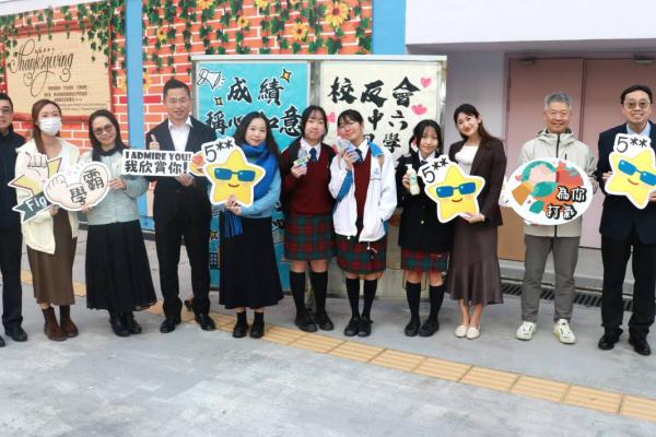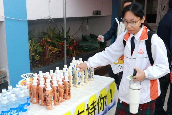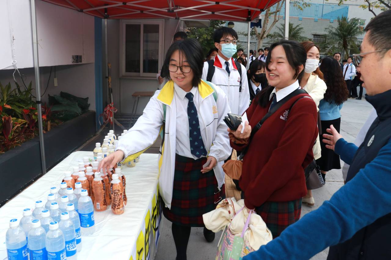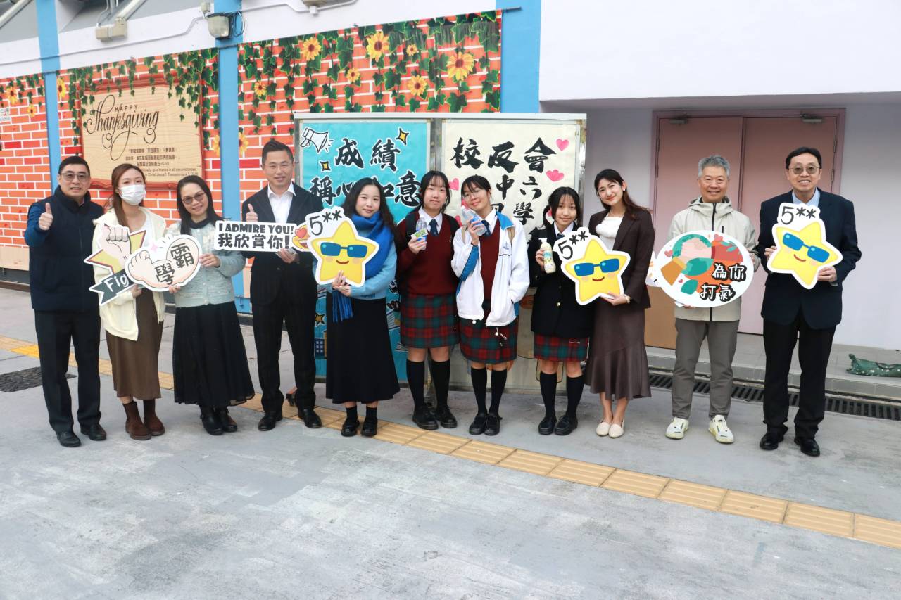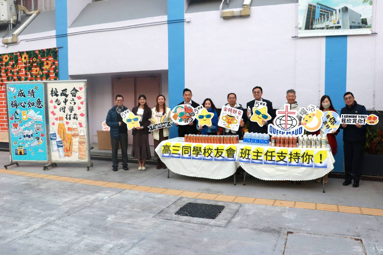 校友會與校長,副校及中六班主任派禮物為高三同學打氣